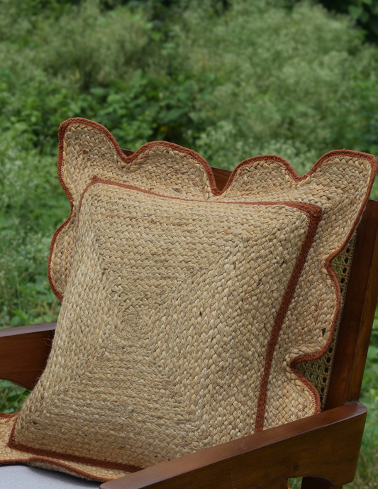 Crafted from natural jute fibers, this cushion cover features an intricate scallop pattern that adds a touch of texture and sophistication to any space.
