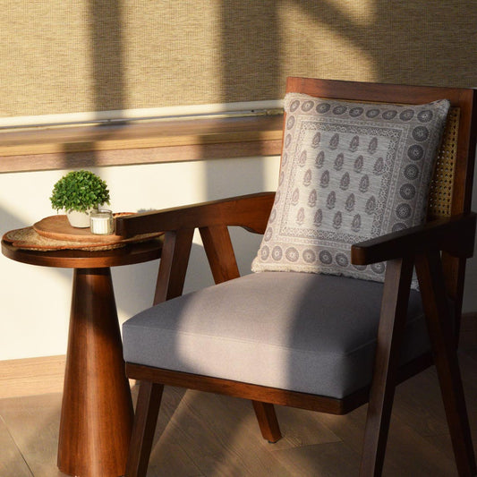 The muted yet vibrant color palette strikes the perfect balance between traditional elegance and contemporary minimalism, making it versatile for any setting. Crafted with care, the natural texture of the linen echoes India's handloom traditions, while the convenient zip enclosure ensures effortless functionality.