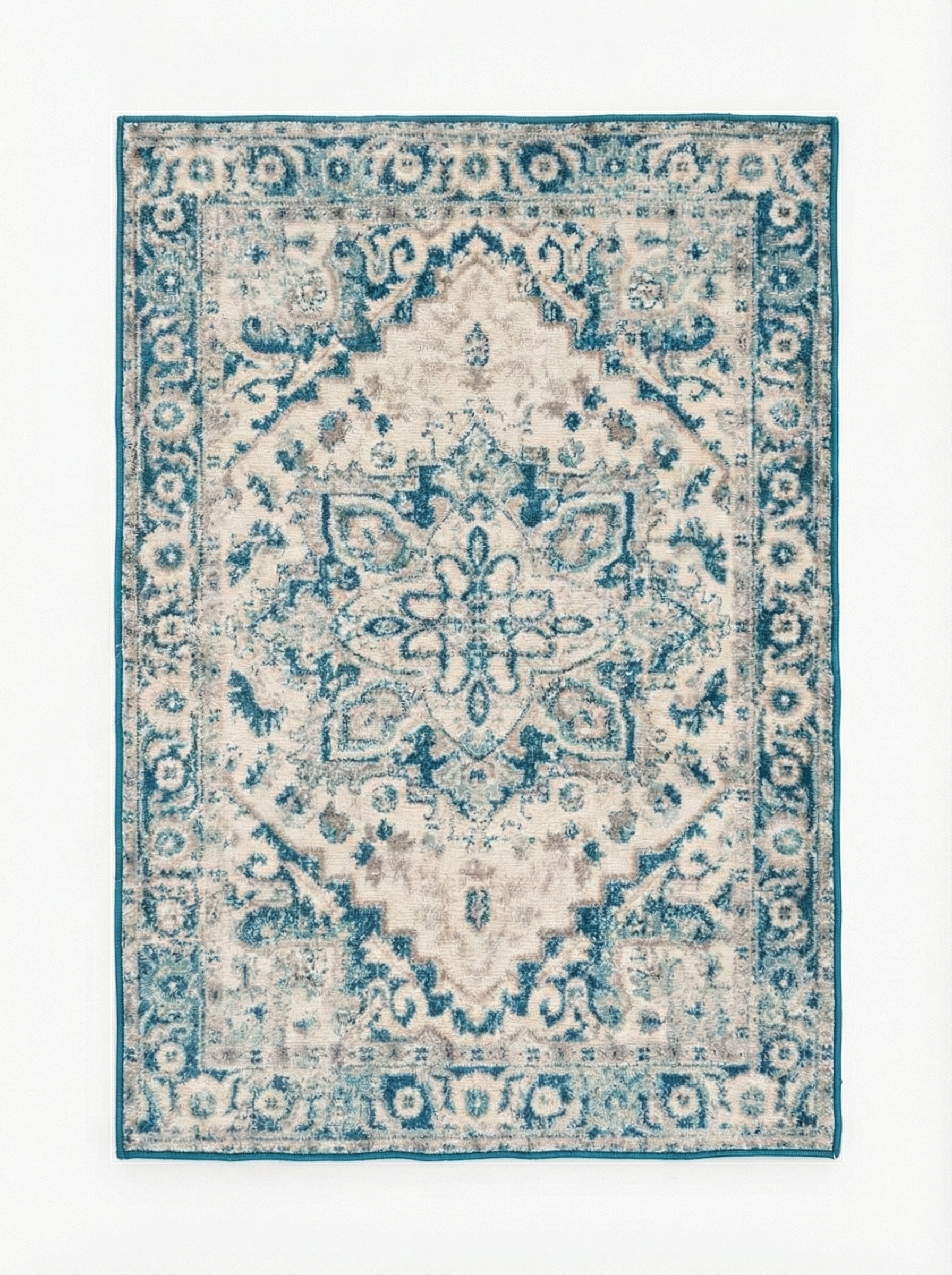 Refined and quietly expressive, the Azure Heirloom Rug features a classic medallion design softened by a beautifully distressed finish. Rendered in layers of ivory and muted blue, the pattern feels time-worn yet intentional evoking the elegance of antique rugs while remaining perfectly suited to contemporary interiors. The intricate border frames the central motif with balance and symmetry, making this rug a timeless foundation for both modern and transitional spaces.
