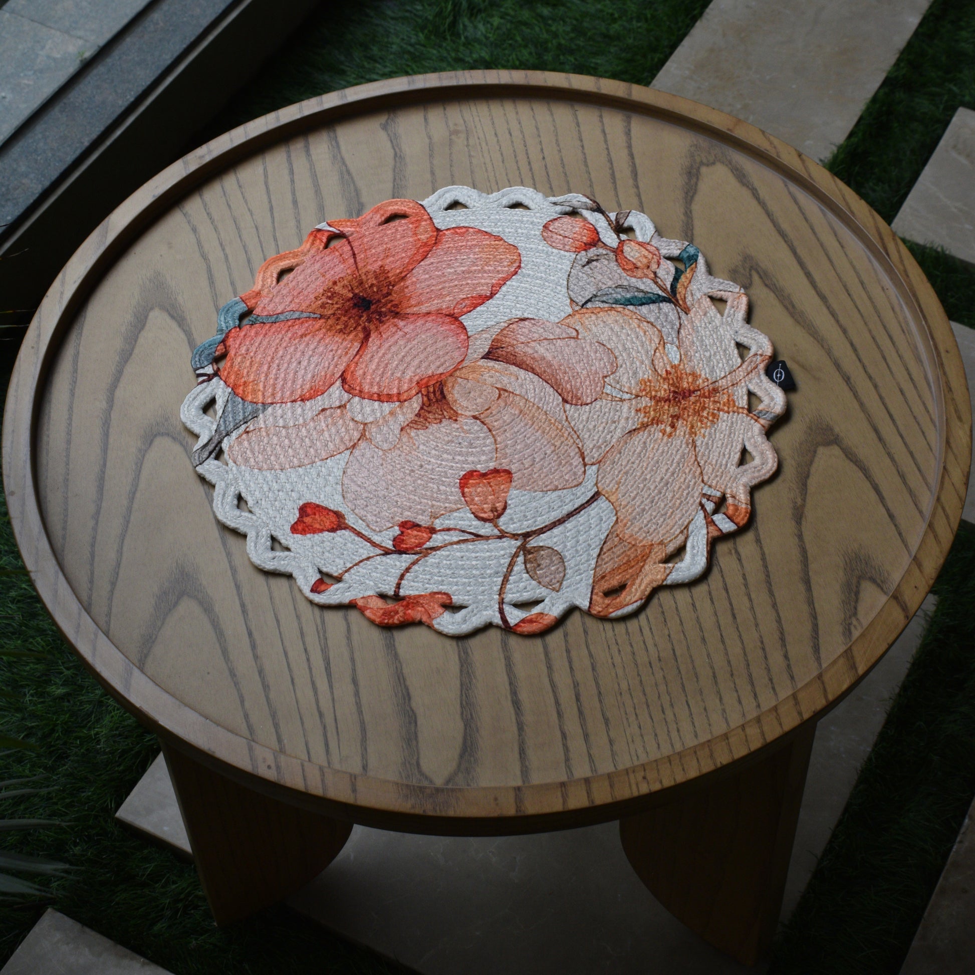 Immerse yourself in the warmth and charm with these elegant floral motif printed table mats. Crafted with precision and artistry, each mat showcases a delicate arrangement of timeless floral patterns, blending charm with sophistication along with a scallop edge.